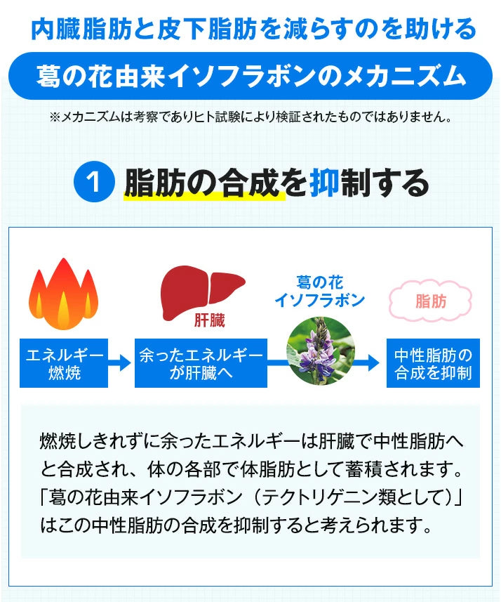 „Isoflavone aus der Kuzu-Blüte“ sind nachweislich in der Lage, die Bildung von Triglyzeriden zu hemmen.