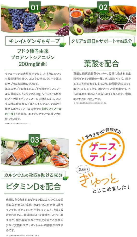 Vollständiges Inhaltsstoffprofil—Das Basiseränzungsmittel von Kikkoman enthält eine transparente Zusammensetzung mit klar angegebenen Mengen: 25 mg Soja-Isoflavon-Aglykon (über 50 % Genistein), 200 mg Proanthocyanidin, 400 µg Folsäure und 30,0 µg Vitamin D3. Alle Mengen sind tatsächlich gemessene Werte.