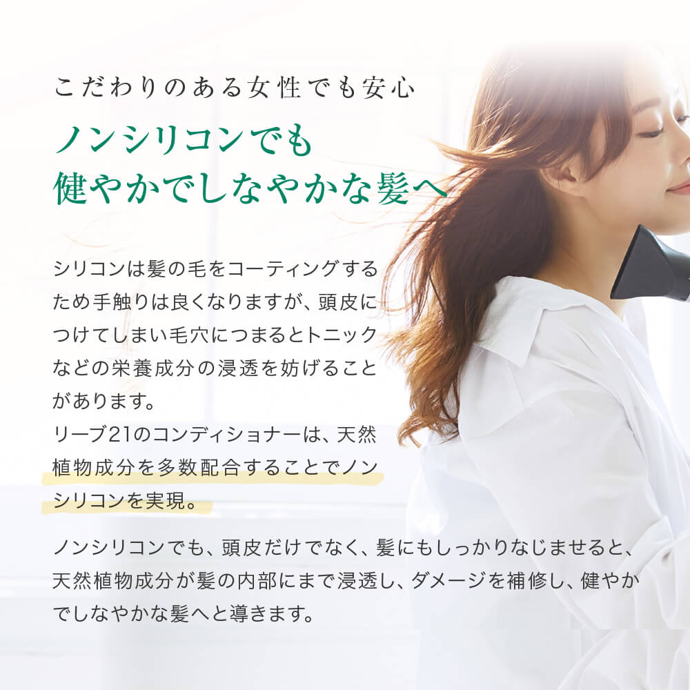 A REVE21 a simaságot több természetes növényi összetevő segítségével éri el a szilikon helyett, így a balzsam közvetlenül a fejbőrre is felvihető, miközben puha, könnyen kezelhető hajat biztosít.
