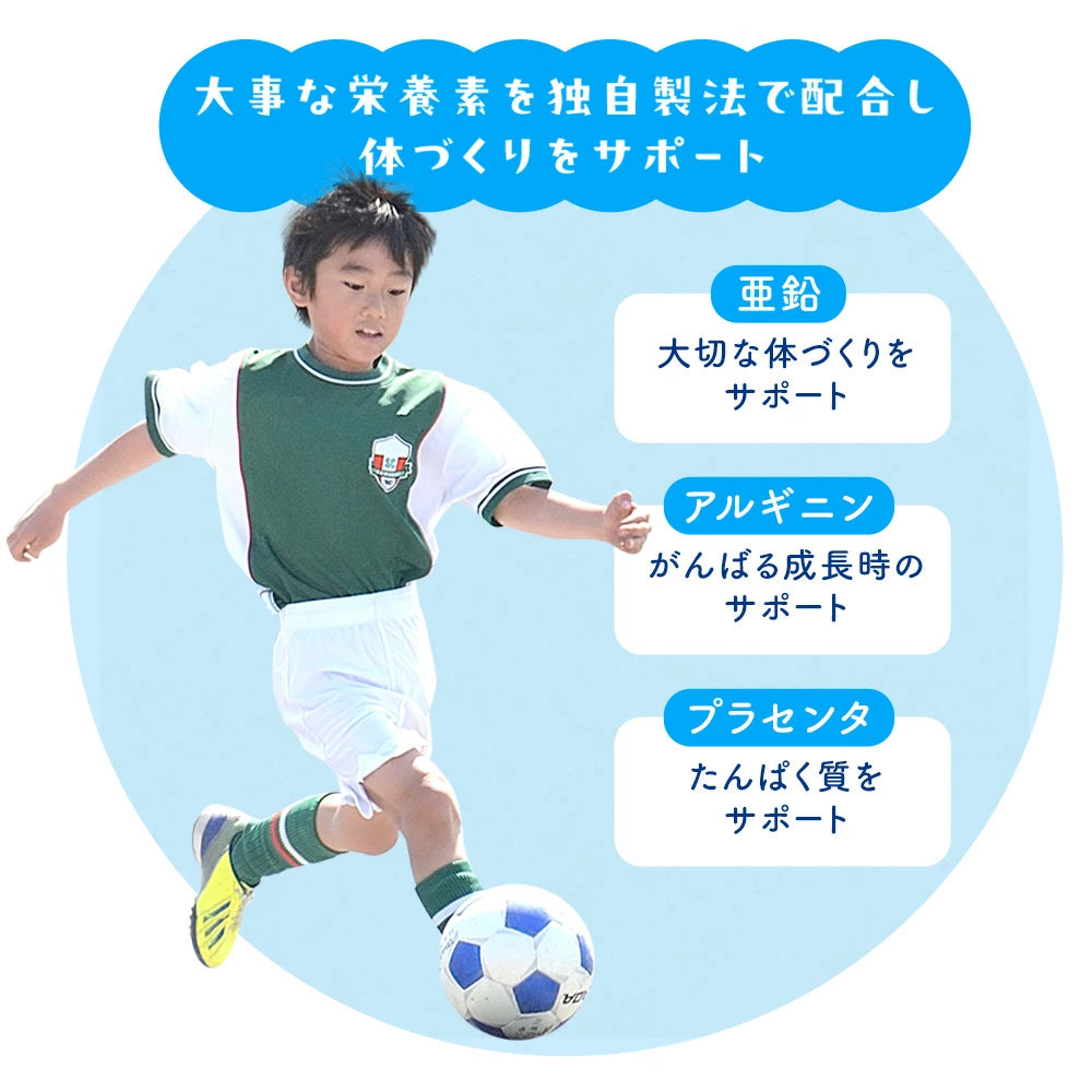 Ingredients: [Sapore di Cacao] Zucchero semolato (produzione nazionale), polvere di cacao, dolomite, lattosucrosio, minerali di origine vegetale, lievito contenente zinco, peptidi di calcio della caseina, isolato proteico di soia, polvere di sardine essiccate, peptidi di collagene, polvere di estratto di aceto nero, coltura raffinata di Bacillus subtilis, polvere di estratto di placenta di melone, polvere raffinata di olio di pesce contenente DHA / calcio non calcinato, vitamina C, pirofosfato ferrico, vitamina E, niacina, aroma, pantotenato di calcio, vitamina B6, vitamina B2, vitamina B1, vitamina A, acido folico, L-arginina, vitamina D, vitamina B12, (contiene ingredienti lattiero-caseari, gelatina, soia e sesamo in parte) [Sapore di Fragola] Zucchero semolato (produzione nazionale), dolomite, polvere di fragola, polvere per cremoso, lievito contenente zinco, lattosucrosio, peptidi di calcio della caseina, minerali di origine vegetale, isolato proteico di soia, polvere di sardine essiccate, peptidi di collagene, polvere di estratto di aceto nero, coltura raffinata di Bacillus subtilis, polvere di estratto di placenta di melone, polvere raffinata di olio di pesce contenente DHA / calcio non calcinato, aroma, lattato di calcio, vitamina C, vitamina E, pirofosfato ferrico, niacina, colorante Monascus, vitamina A, pantotenato di calcio, vitamina D, vitamina B6, vitamina B2, vitamina B1, acido folico, L-arginina, vitamina B12, (contiene ingredienti lattiero-caseari, gelatina, soia e sesamo in parte) [Sapore di Pesca] Zucchero semolato (produzione nazionale), dolomite, lievito contenente zinco, lattosucrosio, peptidi di calcio della caseina, minerali di origine vegetale, isolato proteico di soia, polvere di sardine essiccate, peptidi di collagene, polvere di estratto di aceto nero, coltura raffinata di Bacillus subtilis, polvere di estratto di placenta di melone, polvere raffinata di olio di pesce contenente DHA / calcio non calcinato, aroma, lattato di calcio, vitamina C, vitamina E, pirofosfato ferrico, niacina, colorante Monascus, vitamina A, pantotenato di calcio, vitamina D, vitamina B6, vitamina B2, vitamina B1, acido folico, L-arginina, vitamina B12, (contiene ingredienti lattiero-caseari, gelatina, soia e sesamo in parte)