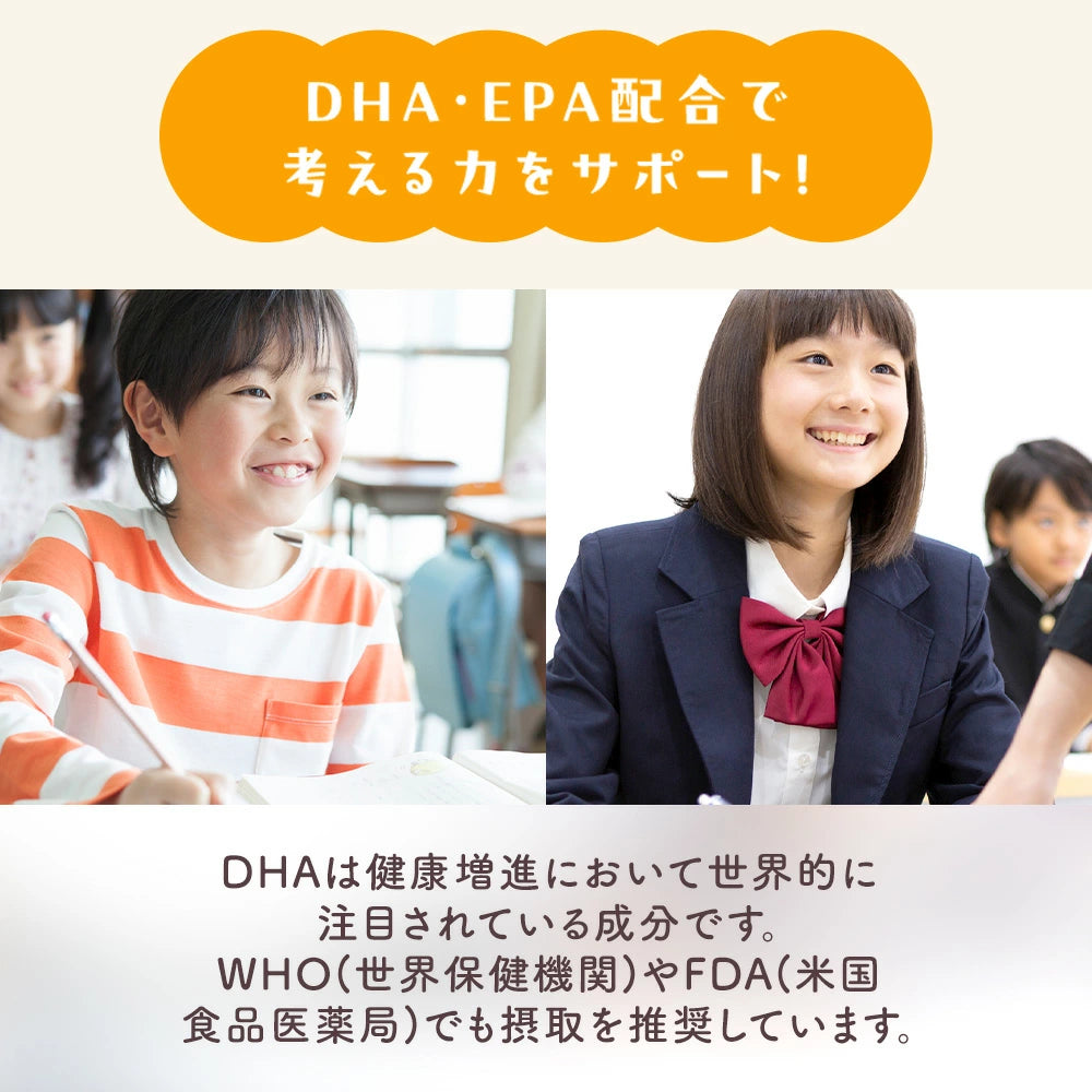 Gli acidi grassi omega-3 DHA ed EPA sostengono lo sviluppo cerebrale e la funzione cognitiva. L'OMS e la FDA raccomandano l'assunzione di DHA per la salute dei bambini. Una porzione aiuta i bambini che non amano il pesce a ottenere questi nutrienti essenziali.