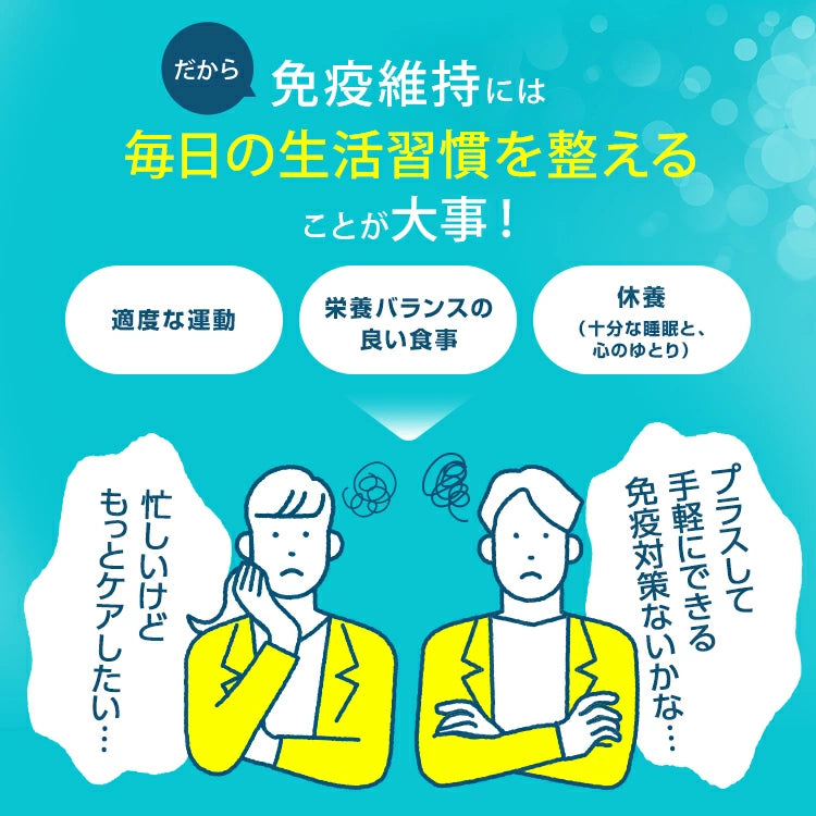 - Abbina a un'alimentazione equilibrata, esercizio fisico adeguato e sonno sufficiente per un sostegno completo al sistema immunitario