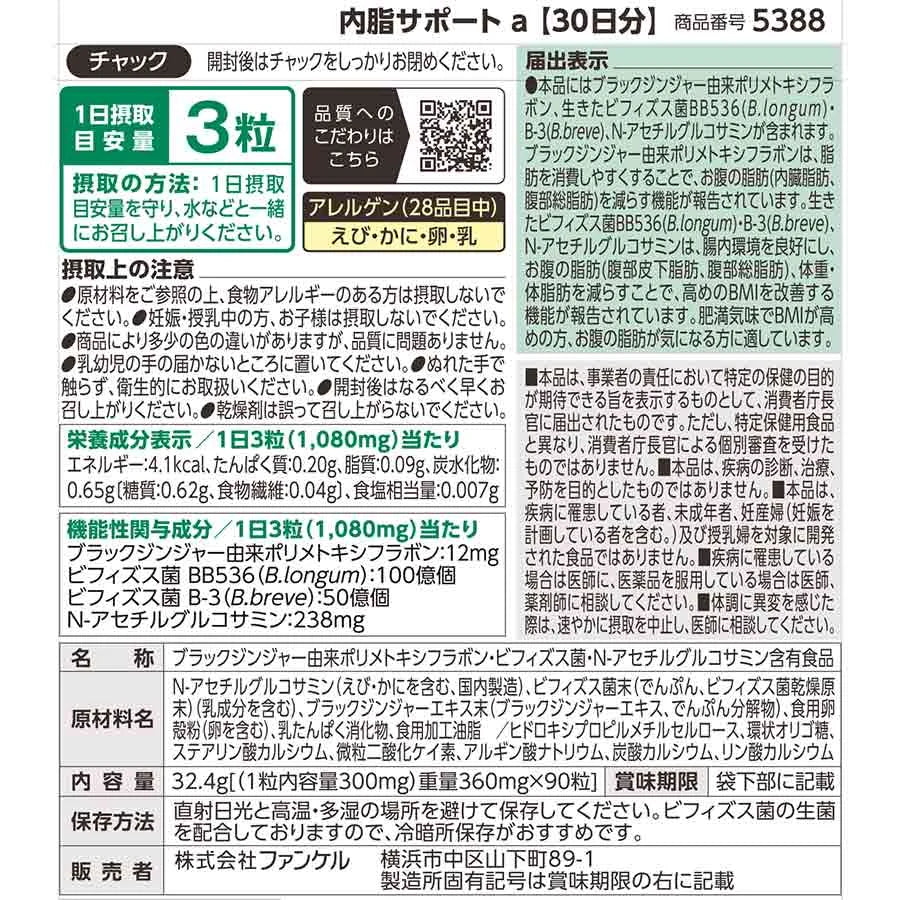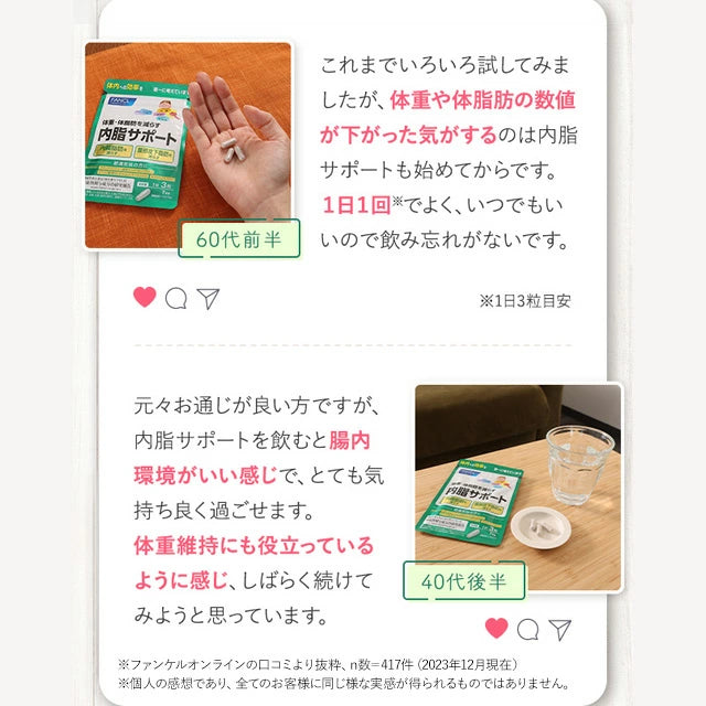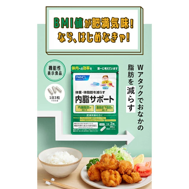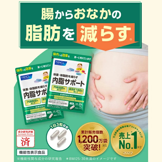 FANCL Sokongan Dalaman Badan memberikan sokongan menyeluruh untuk lemak perut melalui bahan berfungsi yang telah dikaji secara klinikal.