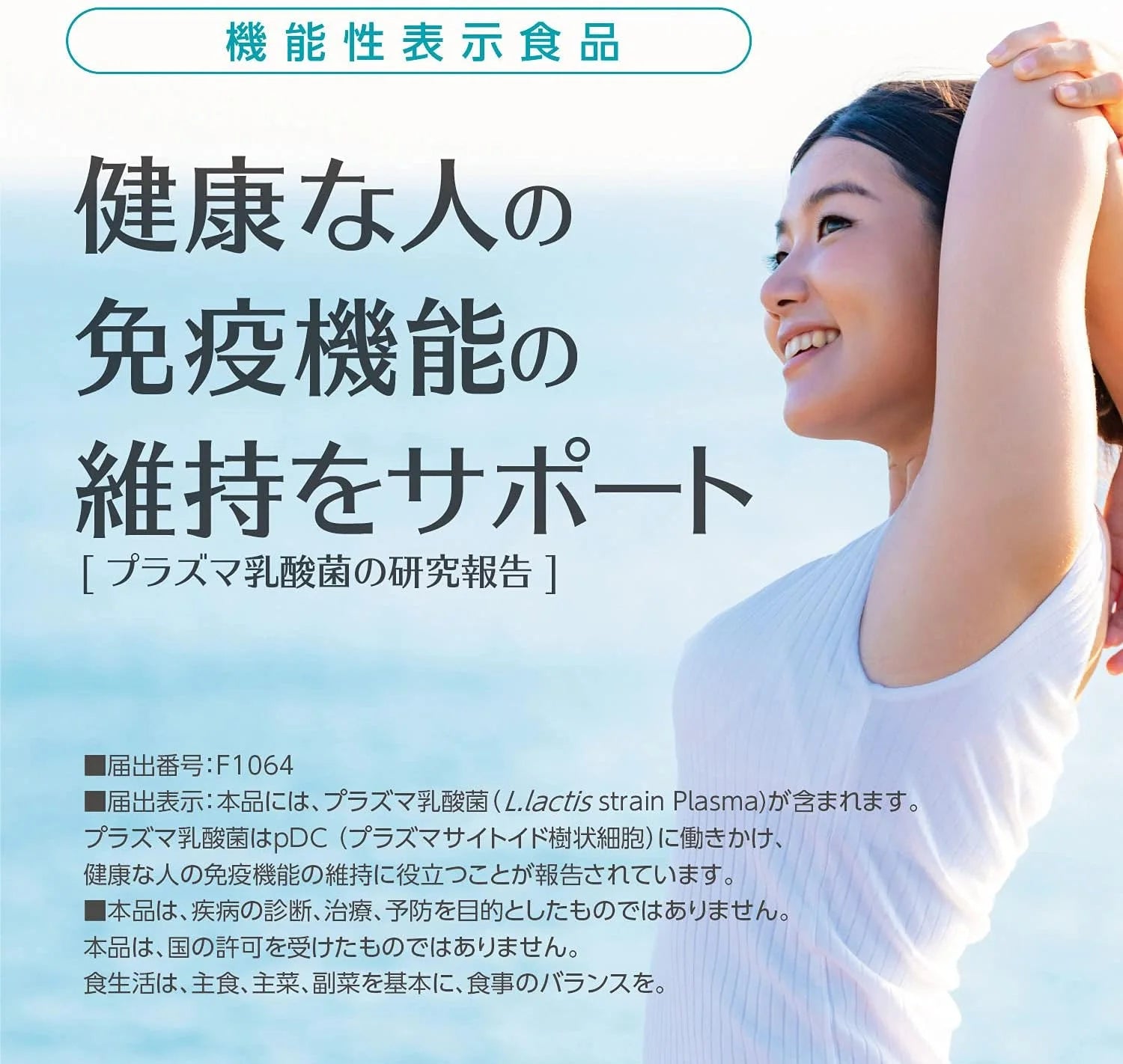 Fonksiyonel Gıda Kaydı—Bu ürün, Japonya Tüketici İşleri Ajansı tarafından İşlevsel İddialı Gıda (F1064) olarak kayıtlıdır. Resmî bildirim, Plazma Laktik Asit Bakterilerinin sağlıklı bireylerde bağışıklık işlevinin korunmasına yardımcı olduğunu doğrulamaktadır.