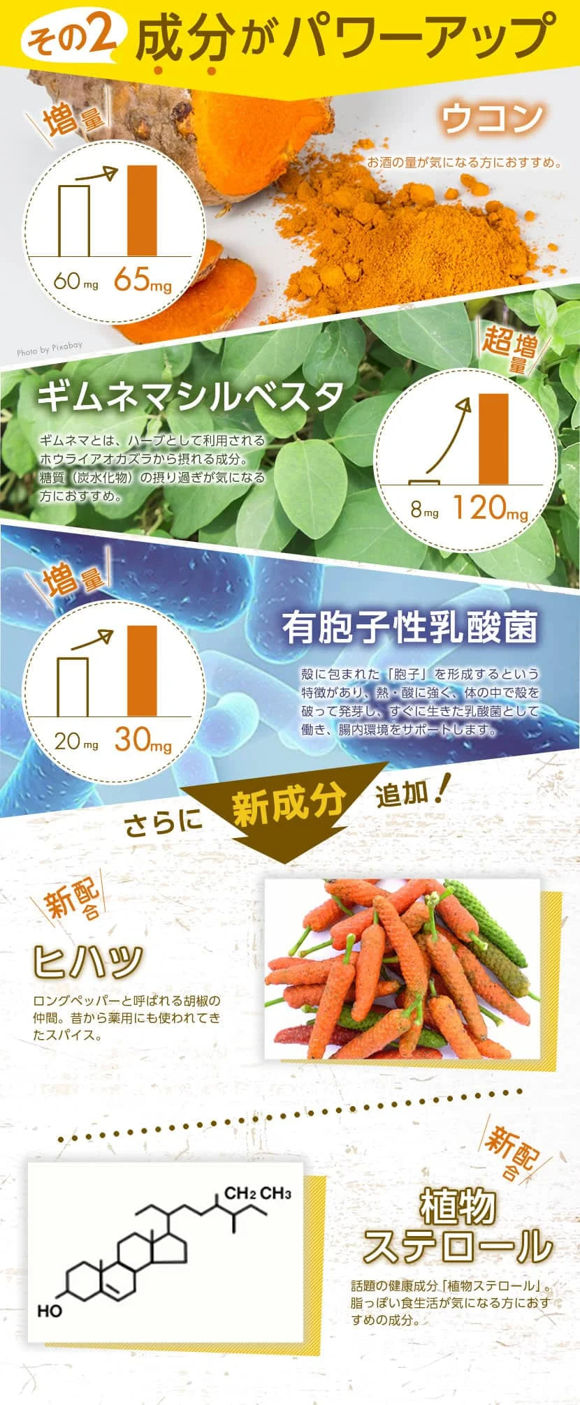 Zerdeçal (Ukon), porsiyon başına 65 mg'a çıkarılmıştır ve Japonya'da geleneksel olarak içki sonrası vücudu desteklemek için kullanılmıştır. Enzim formülü ile birleştiğinde, vücudunuzun alkolü doğal olarak işlemesine yardımcı olur—sosyal etkinlikler için mükemmeldir.