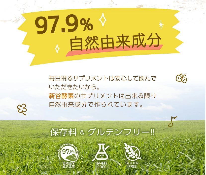 %97,9 doğal içeriklerle yapılmıştır, koruyucu içermez ve glutensizdir. Formül, yapay alternatifler yerine koji küfü, filizlenmiş kahverengi pirinç ve eski tahıllar gibi geleneksel fermente edilmiş bileşenler kullanır.