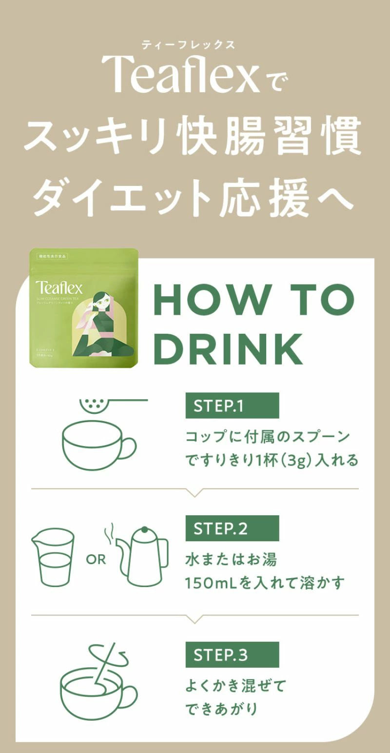 Teaflex Diet Green Tea is Japan's first and only functional labeled green tea combining HMPA and plant-based lactic acid bacteria K-1 to help reduce visceral fat and waist circumference while improving bowel regularity. This convenient powder formula delivers 23mg of HMPA and 50 billion K-1 lactic acid bacteria per serving, enhanced with vitamins and fiber to support your weight management journey naturally and deliciously.