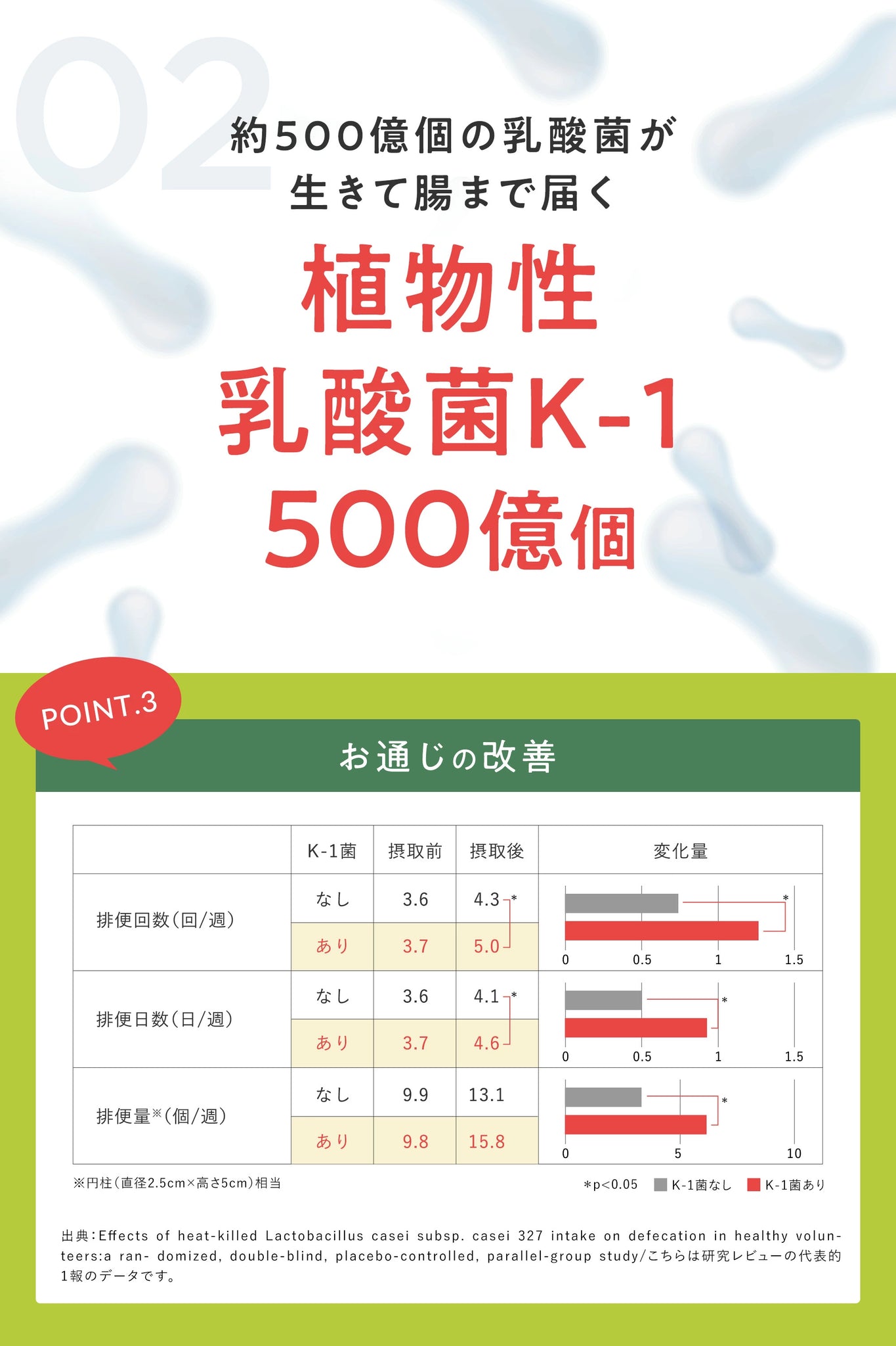 Functional Ingredient Content (per serving): HMPA 23mg, Plant-based Lactic Acid Bacteria K-1 (L. casei 327) 50 billion cells