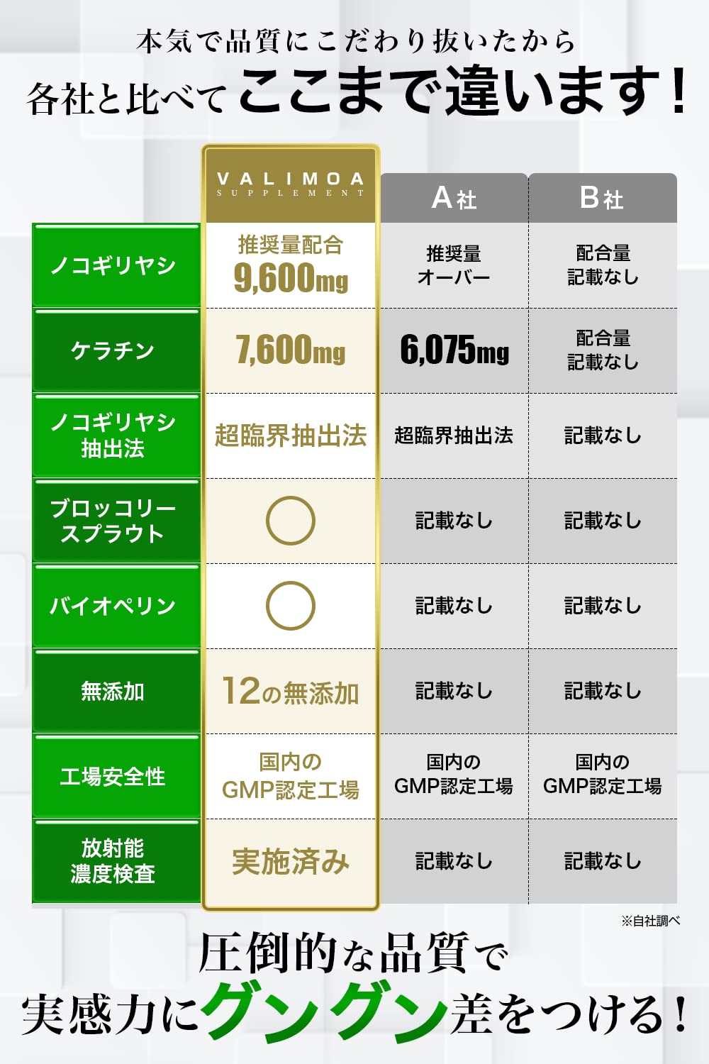 竞争对比—根据公司研究,VALIMOA在锯棕榈剂量、角蛋白含量、提取方法和质量认证方面均优于竞争对手。
